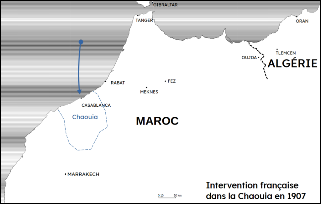 Les combats de « pacification de la Chaouia » au Maroc début 1908 firent l’objet d’une publicité importante dans la presse nationale et de nombreux articles et publications ensuite. Le capitaine Azan publia pas moins de deux ouvrages sur le sujet. Si l’on ajoute le JMO des unités présentes, c’est un ensemble riche qui offre la possibilité de comprendre ce qu’il se passa le 29 février 1908 sur un plateau au Sud-Est de Casablanca.