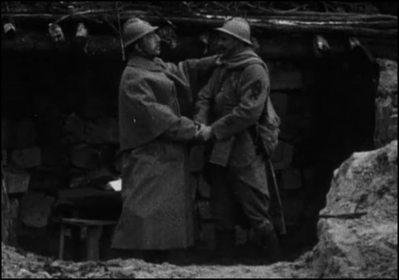 L’union sacrée de la population est un fil rouge de ce film. Pas de jalousie entre camarades quand certains ont une permission et pas d’autres. L’officier est bienveillant avec son caporal : au lieu du salut réglementaire, cet officier insiste pour lui serrer la main, fraternellement.