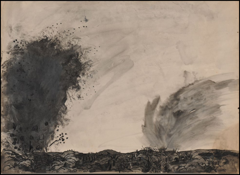 Il développe d’ailleurs ses objectifs clairement, page 389 : « Mais si je cherchais à évoquer l’atmosphère d’Ablain-Nazaire ou de Souchez, je ne cherchais pas l’exactitude des lieux. Il s’agissait de compositions ou d’évocations sans date ni lieu, au contraire des innombrables dessins d’anciens élèves de l’École des beaux arts, fignolant pour leurs colonels des « bois en H » ou des « cotes 203 ». Mes dessins, très sombres, sans légendes, étaient en violente opposition avec les chromos de L’Illustration signés par l’alpin Scott et par l’affreux Jonas (…) »