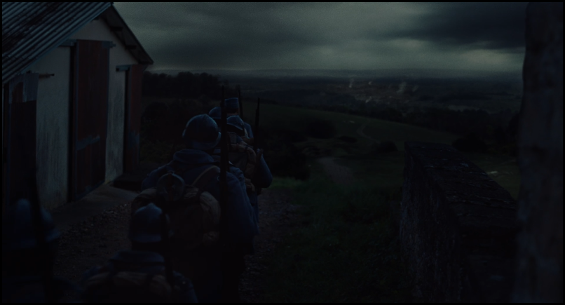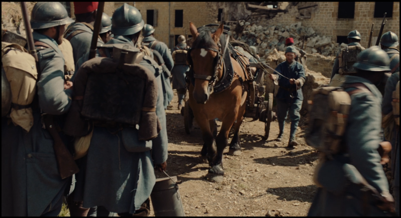 Le casque Adrian aurait dû avoir un croissant plutôt que la grenade de l’infanterie. On en voit quelques exemplaires, qui plus est kaki. La variété des uniformes est étonnante si le film se situe en 1917-1918, mais ce n’est pas un problème en soi, l’ensemble restant réaliste. L’inspiration des uniformes vient très clairement des clichés autochromes3 :