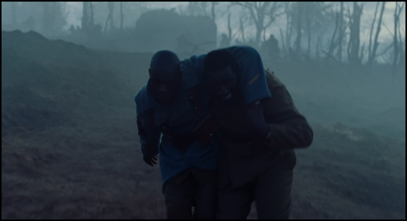 Être des héros est loin des préoccupations de ces hommes qui veulent juste vivre et donnant une troisième vision des relations entre blancs et noirs : un discours paternaliste faisant de belles promesses que l’on sait non tenues. Jusqu’au point d’orgue quand il est dit « Après cette bataille, vous ne serez plus des indigènes, vous serez des Français » alors que l’on observe l’inquiétude des soldats dans la tranchée, de nuit, sous le bombardement. On voit là une nouvelle opposition entre ce discours déconnecté et pompeux et la réalité.